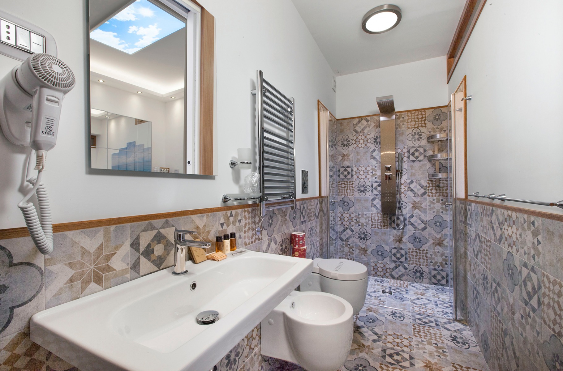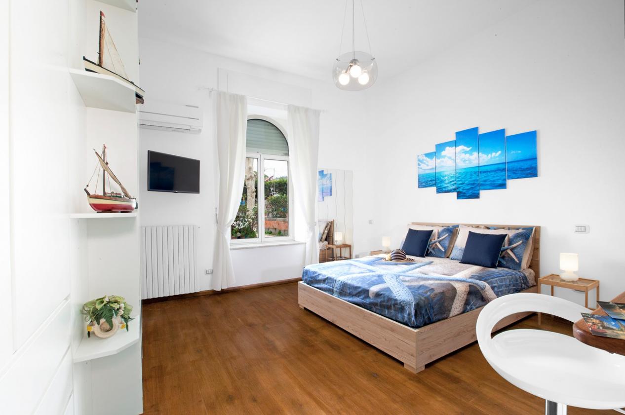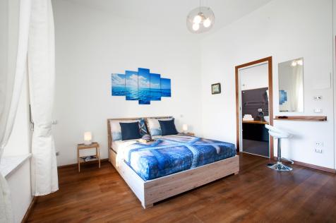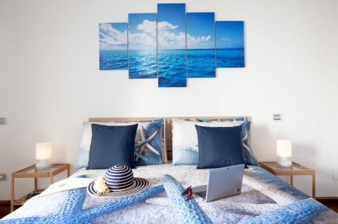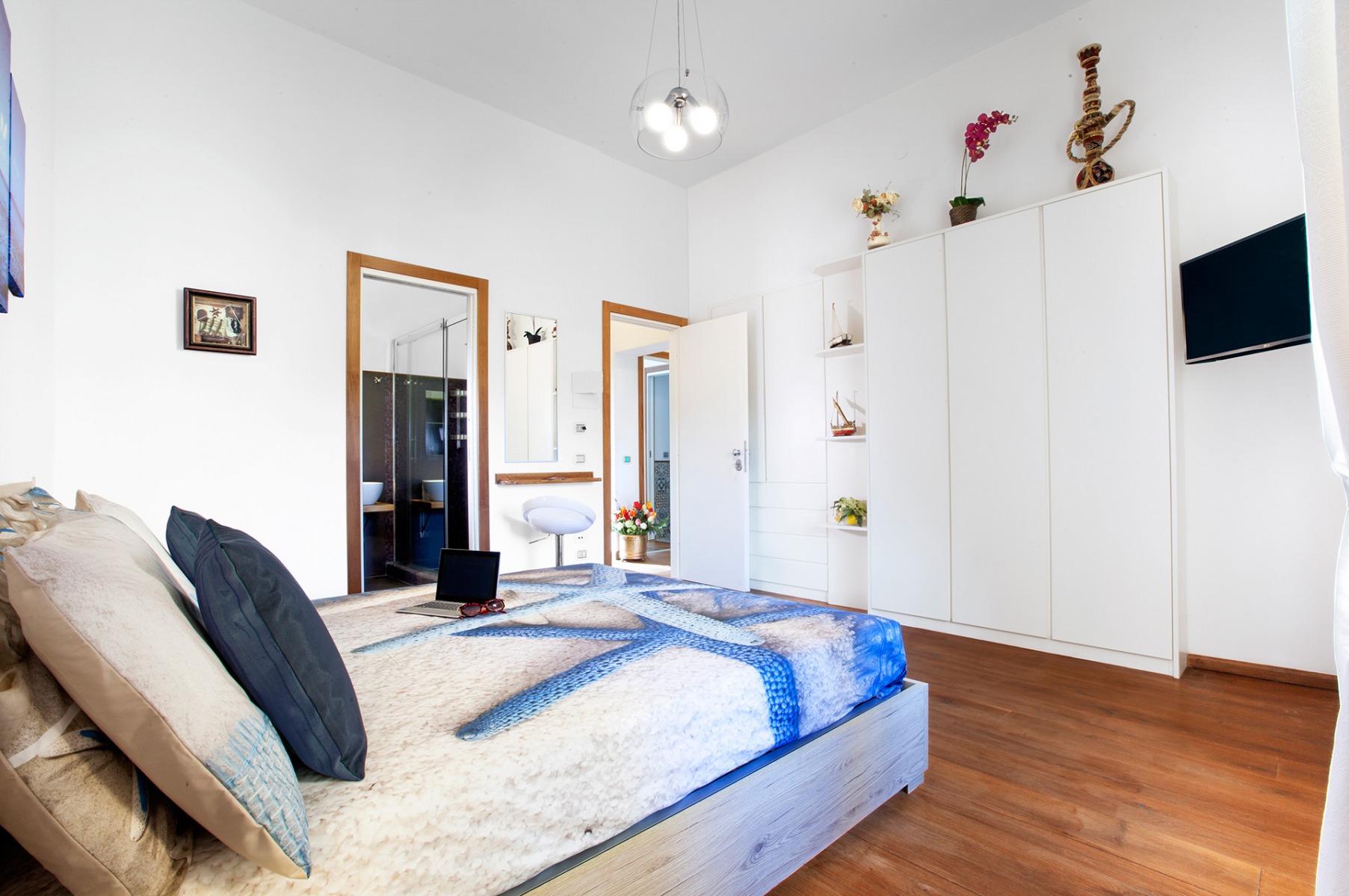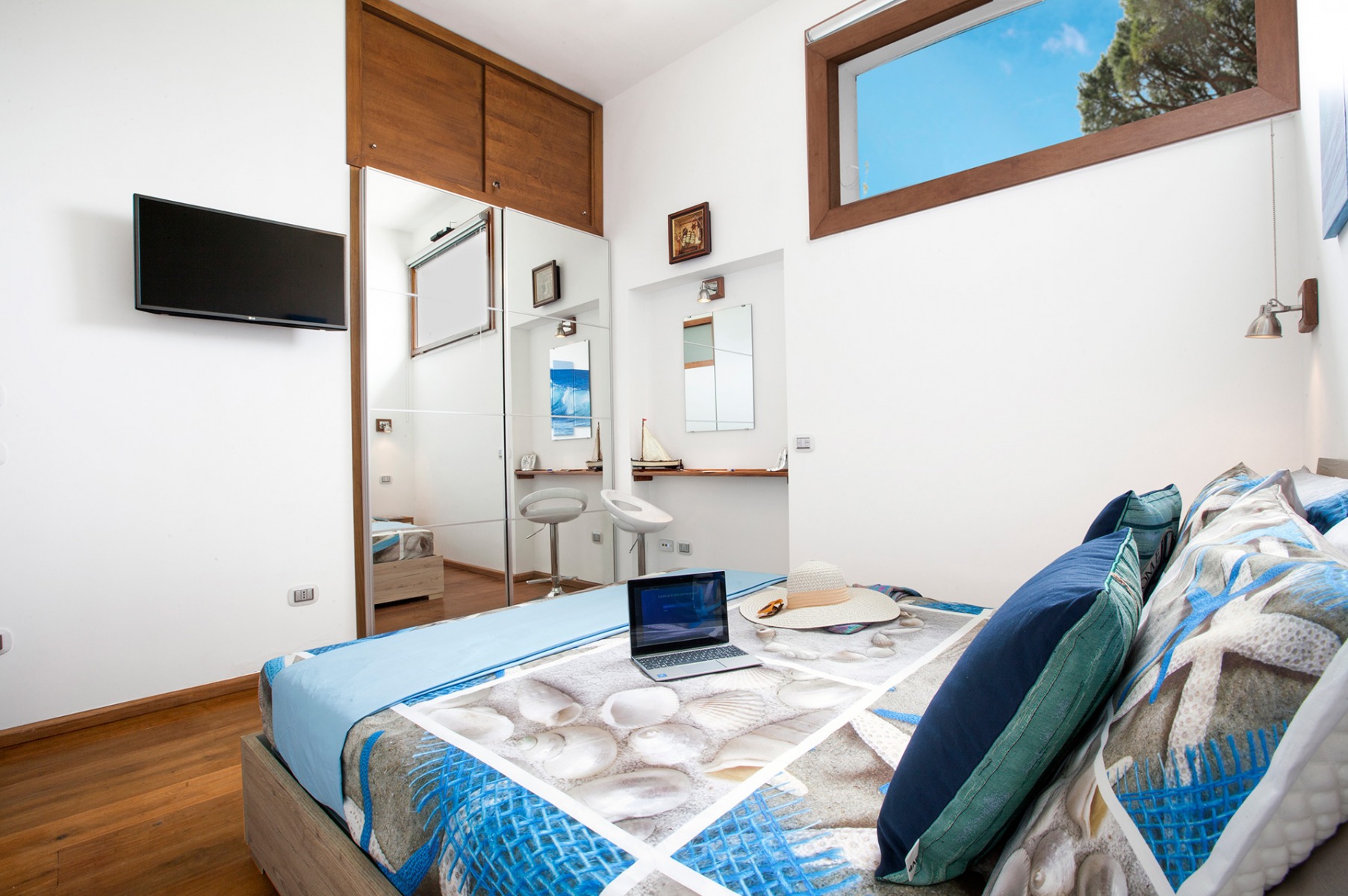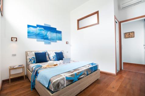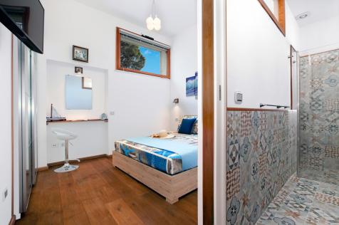 La camera matrimoniale King è un piccolo gioiello dove rilassarsi in tranquillità. Vanta uno stile moderno ed un ambiente luminoso, con pavimenti in parquet ed una finestra che affaccia sul cortile. Gli arredi seguono lo stile minimal, con colori rilassanti ed atmosfere marine in perfetta armonia con la vista panoramica.