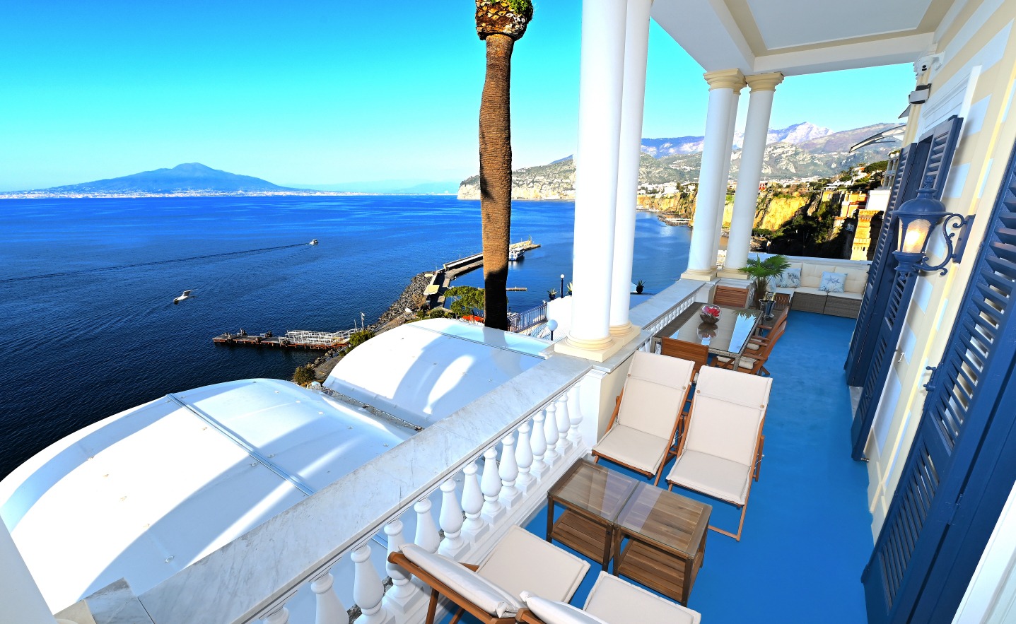 La Suite Familiare con Balcone, 60 mq di eleganza e luce, offre quattro ambienti raffinati: camera, salotto, cucina e bagno, tutti con balconi vista mare. Il design moderno e minimale si fonde con il fascino unico del terrazzo panoramico di 30 mq, regalando una vista mozzafiato sul Vesuvio e il Golfo di Napoli.