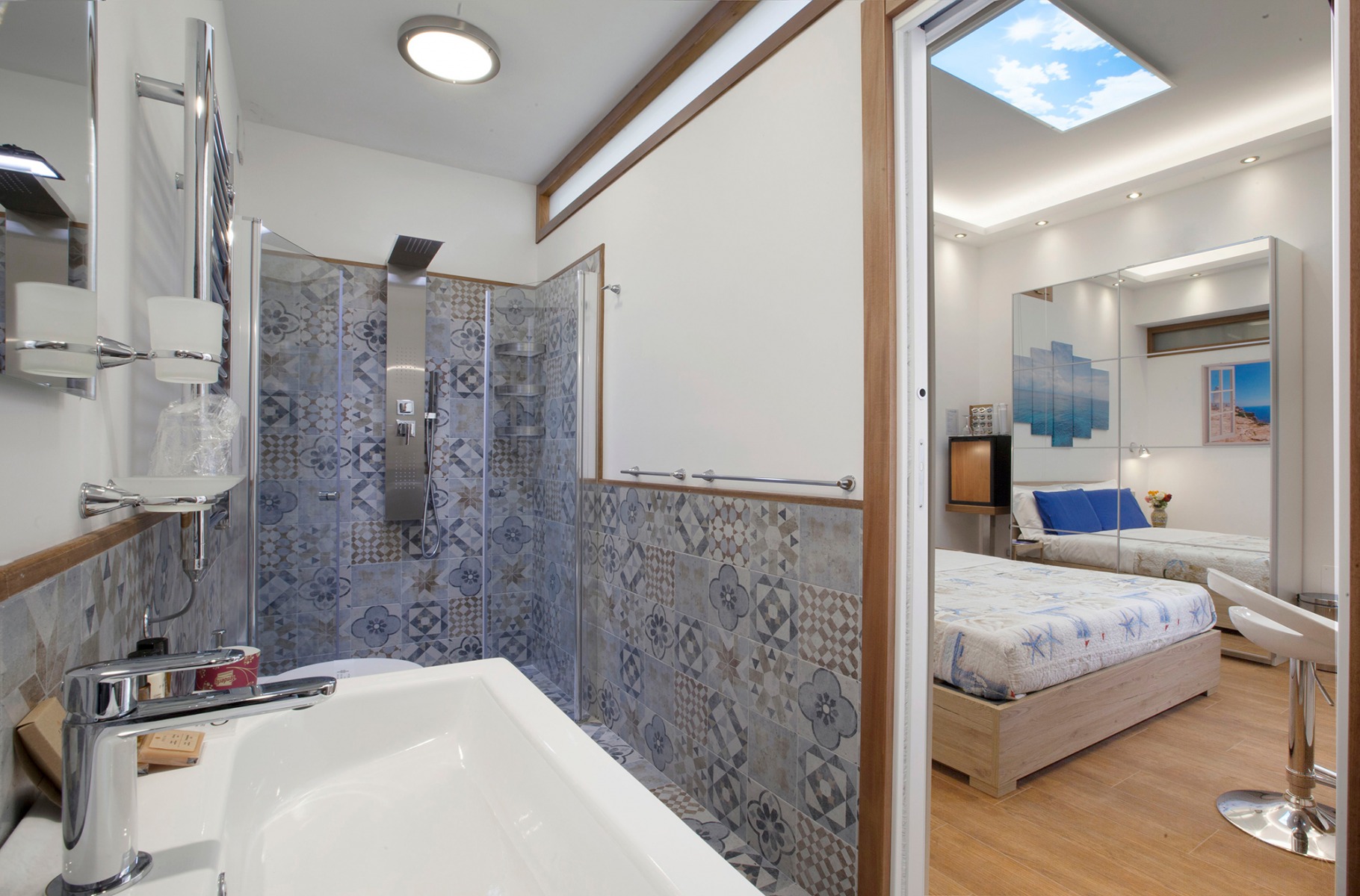 La camera matrimoniale Queen si caratterizza per uno spazio accogliente e la scelta di arredi moderni e funzionali che riprendono l’armonia dei colori delle ambientazioni circostanti, con decori a tema marino, ma d’effetto. La camera è dotata di una finestra alta e di un pavimento in parquet.